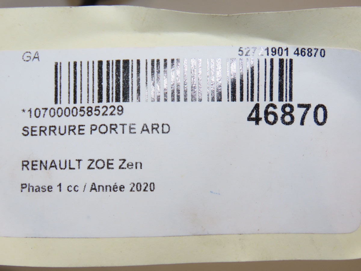 Serrure porte avd occasion RENAULT ZOE Phase 1 10-2012->... Zen