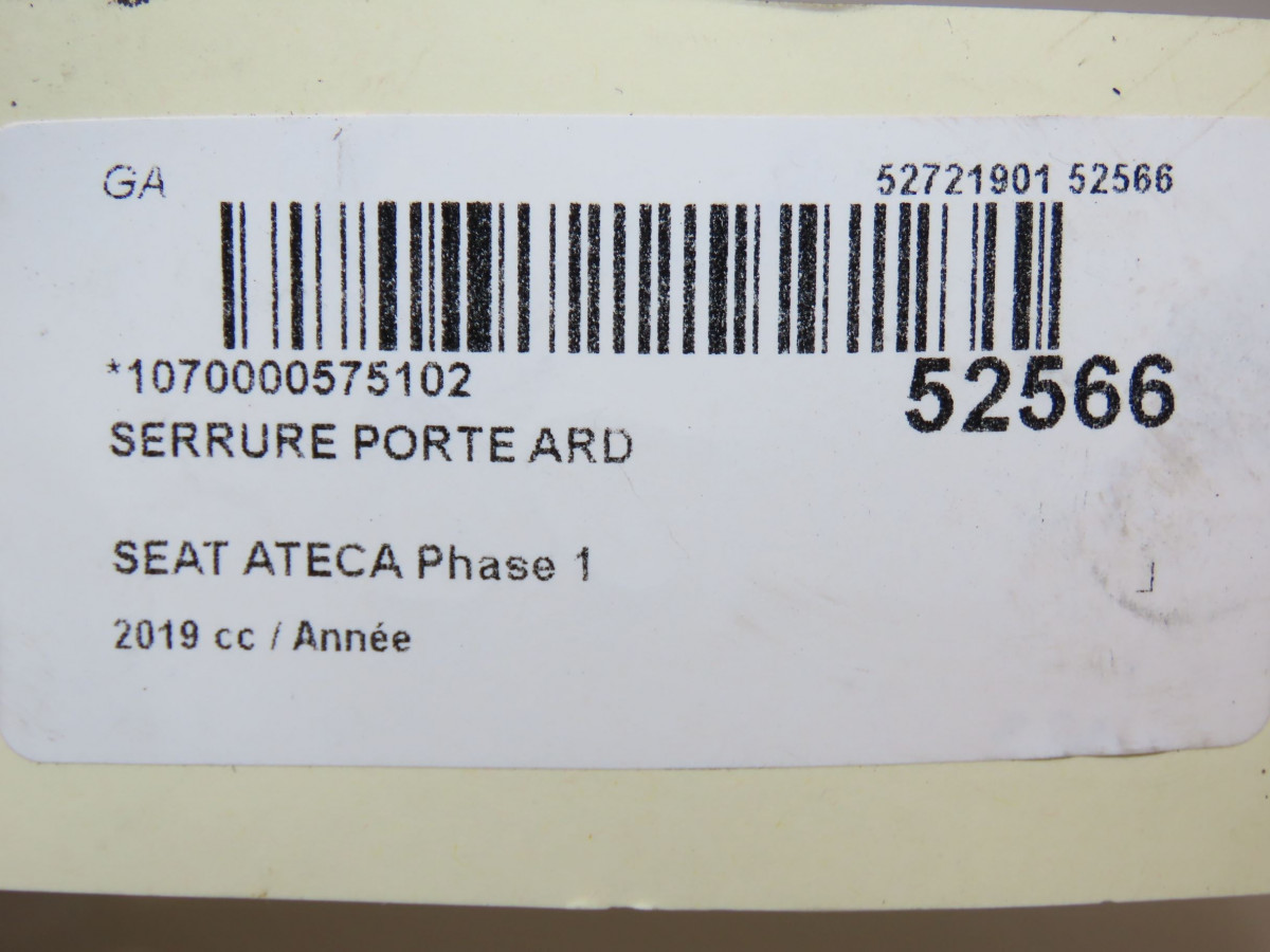 Serrure porte avd occasion SEAT ATECA Phase 1 06-2016->... 5TB837016E
