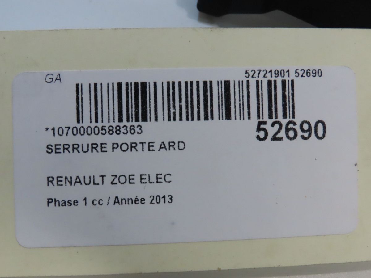 Serrure porte arg occasion RENAULT ZOE Phase 1 10-2012->... ELEC 825034093R
