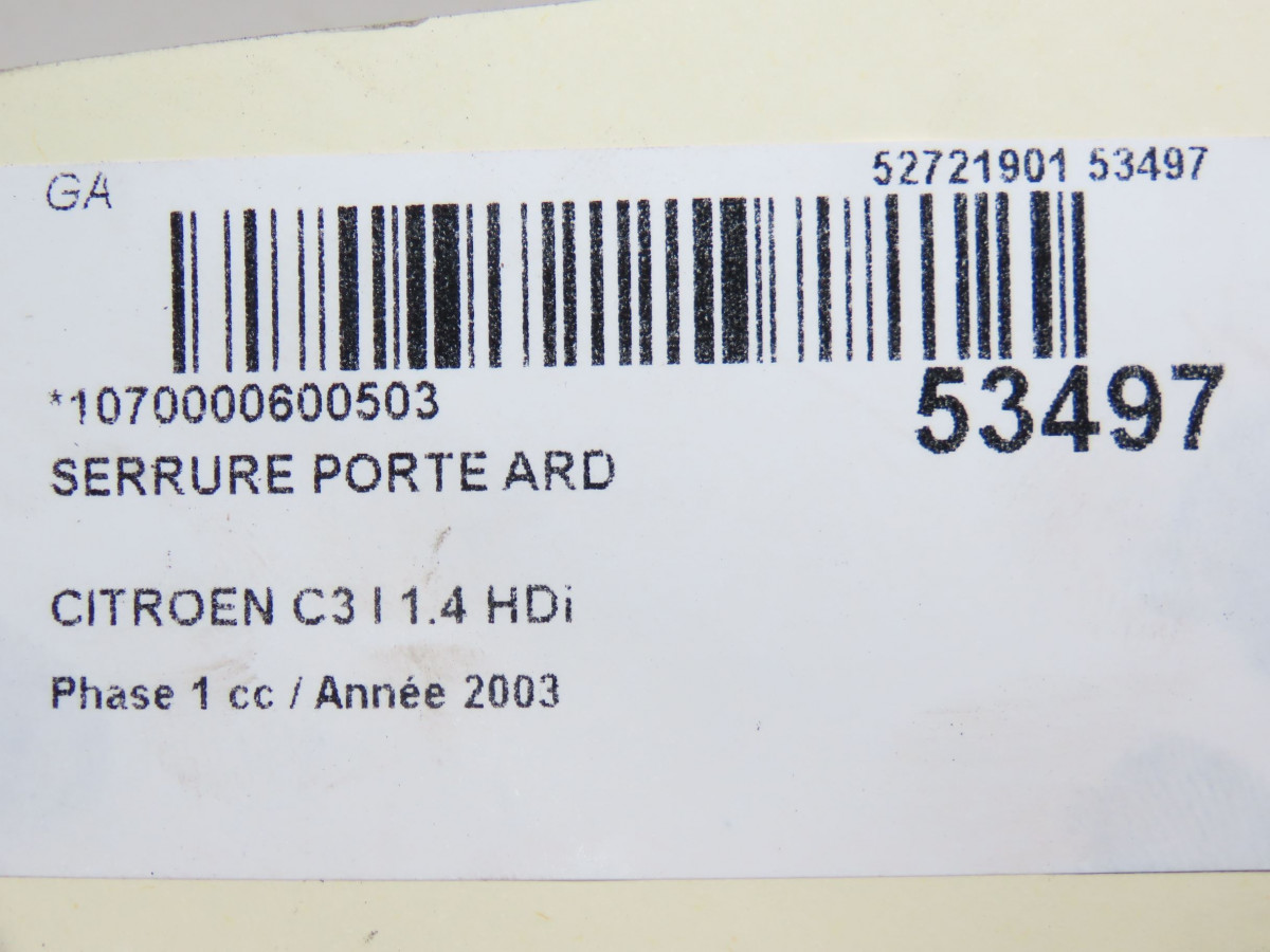 Serrure porte avg occasion CITROEN C3 I Phase 1 04-2002->10-2005 1.4 HDi 9135N0