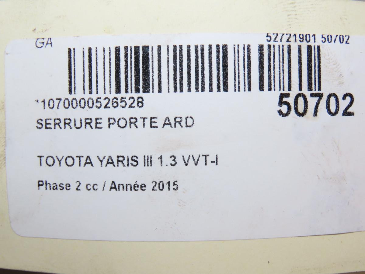 Serrure porte avg occasion TOYOTA YARIS III Phase 2 06-2014->... 1.3 VVT-I 100ch 690400D520
