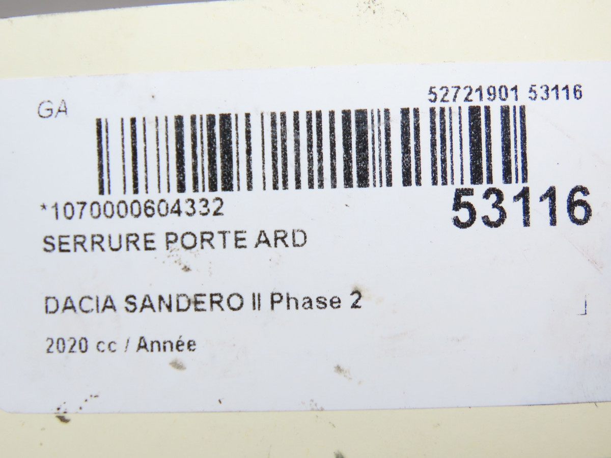 Serrure porte avd occasion DACIA SANDERO II Phase 2 02-2017->... 805026816R