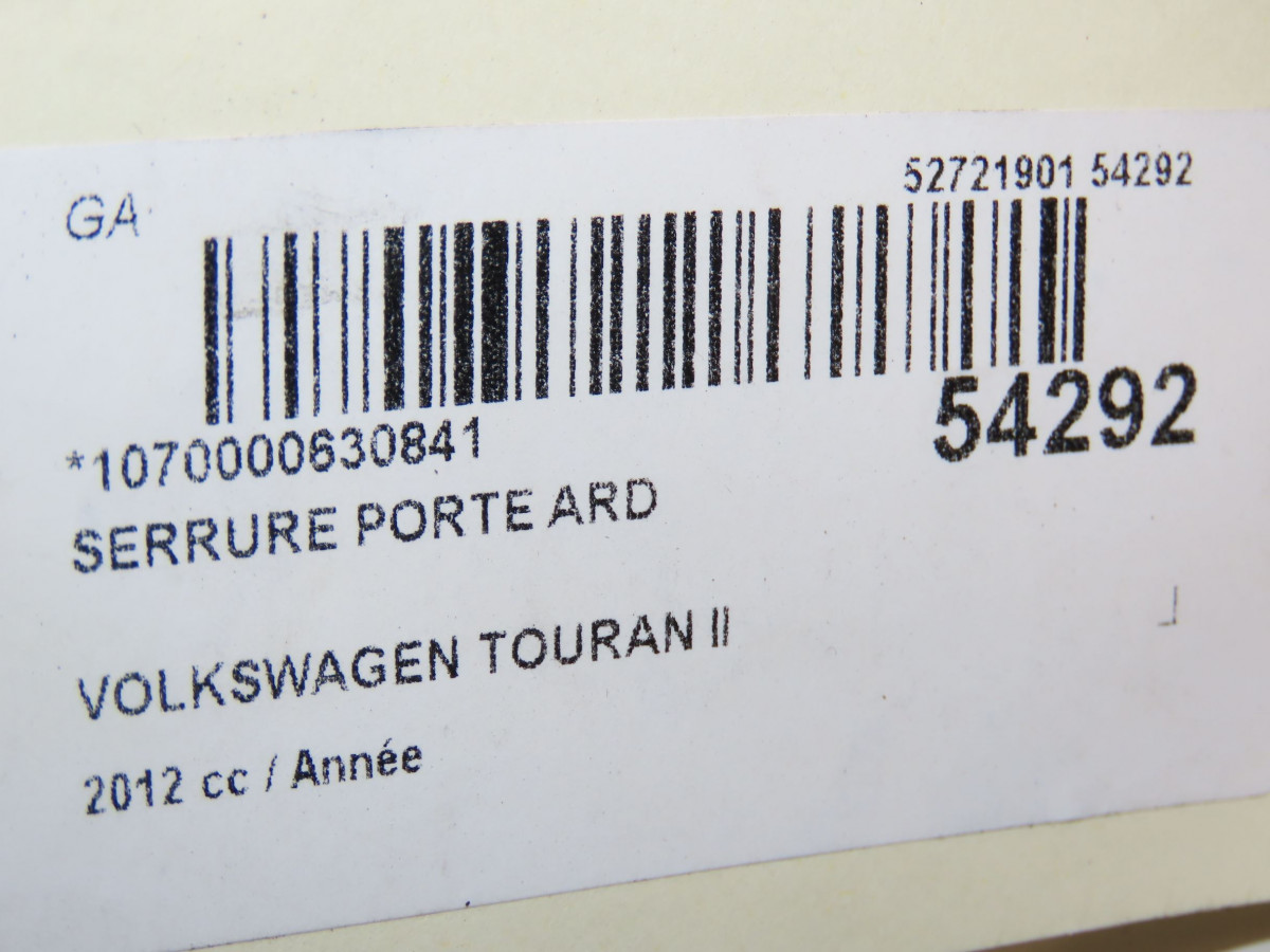 Serrure porte ard occasion VOLKSWAGEN TOURAN IIPhase 1 09-2010->12-2015