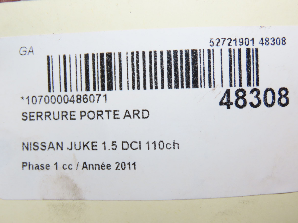 Serrure porte arg occasion NISSAN JUKE Phase 1 09-2010->... 1.5 DCI 110ch 825011KA1A