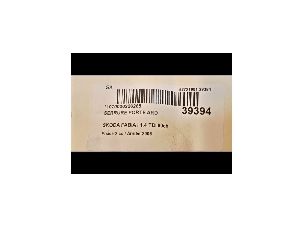 Serrure porte avg occasion SKODA FABIA I Phase 2 09-2004->05-2007 1.4 TDI 80ch 7E1837015A