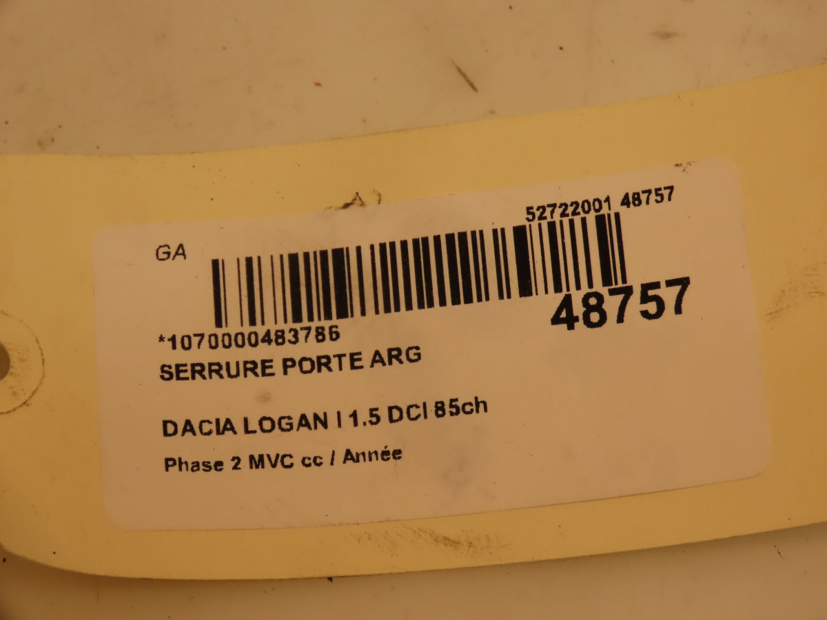 Serrure porte arg occasion DACIA LOGAN IPhase 2 MVC 10-2008->01-2013 1.5 DCI 85ch