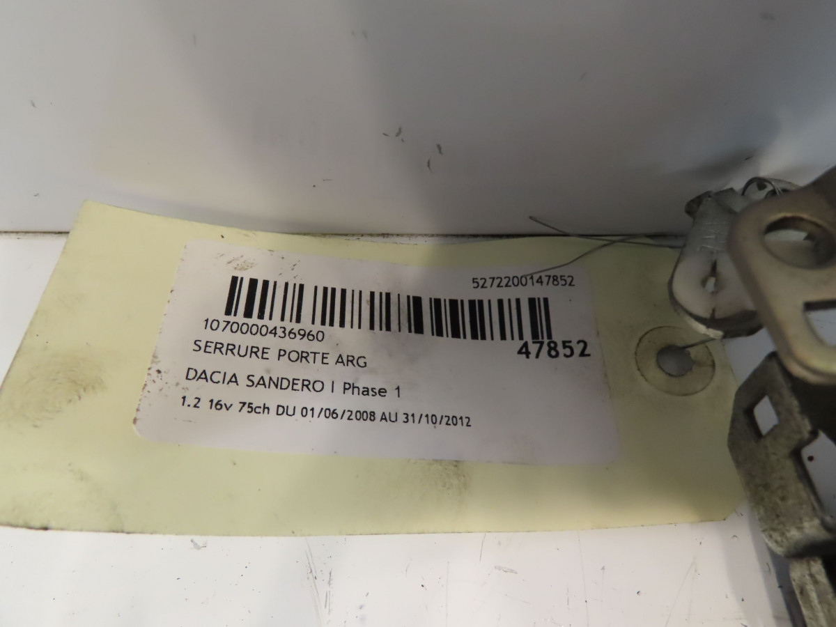 Serrure porte ard occasion DACIA SANDERO I Phase 1 06-2008->10-2012 1.2 16v 75ch 8200735243