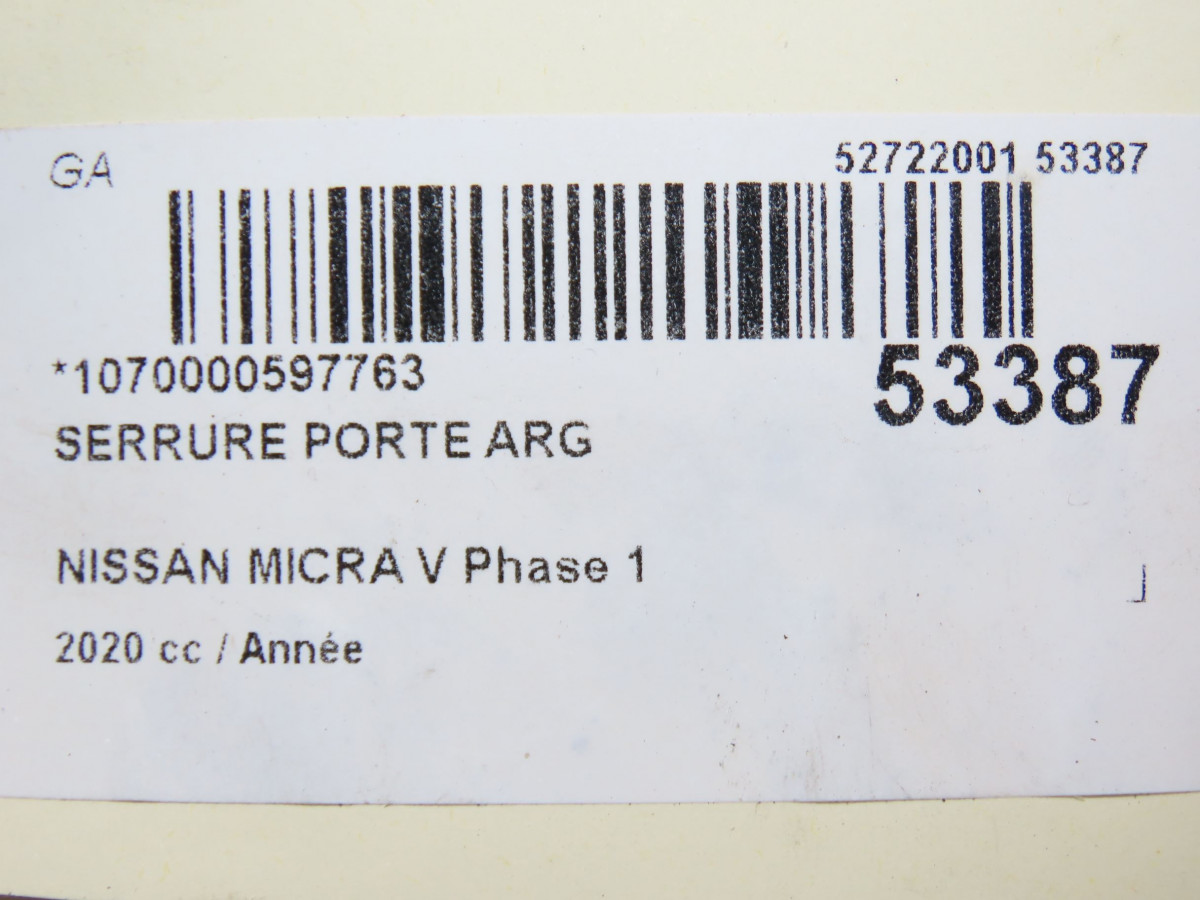 Serrure porte ard occasion NISSAN MICRA V Phase 1 02-2017->... 825005FA0A