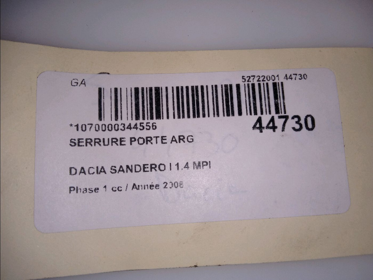 Serrure porte ard occasion DACIA SANDERO I Phase 1 06-2008->10-2012 1.4 MPI 75ch 8200735246