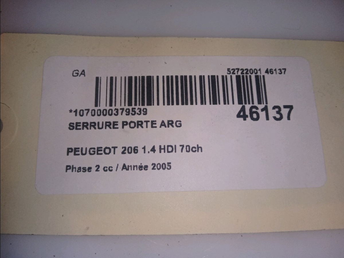 Serrure porte arg occasion PEUGEOT 206Phase 2 02-2003->02-2009 1.4 HDI 70ch