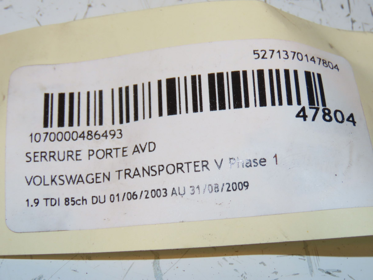 Serrure porte avg occasion VOLKSWAGEN TRANSPORTER V Phase 1 06-2003->08-2009 1.9 TDI 85ch 7E1837015A