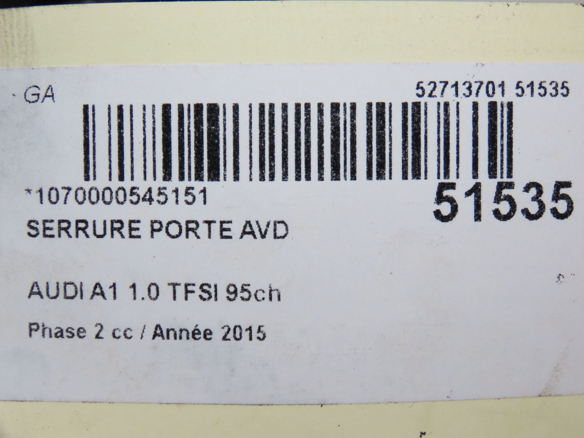Serrure porte arg occasion AUDI A1 A1 Phase 2 2014-12-01->2019-06-30 1.0 TFSI 95ch 8X0839015E