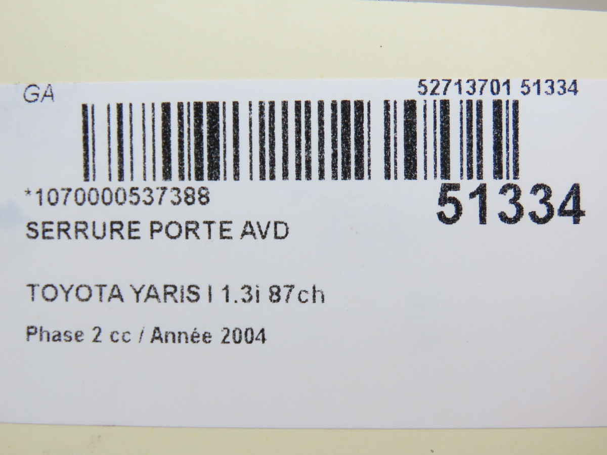 Serrure porte avg occasion TOYOTA YARIS I Phase 2 03-2003->12-2005 1.3i 87ch 693200D021