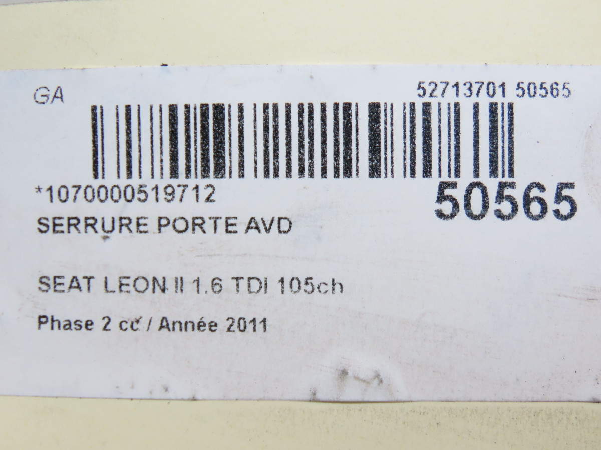 Serrure porte ard occasion SEAT LEON II Phase 2 05-2009->09-2012 1.6 TDI 105ch 1P0839016D