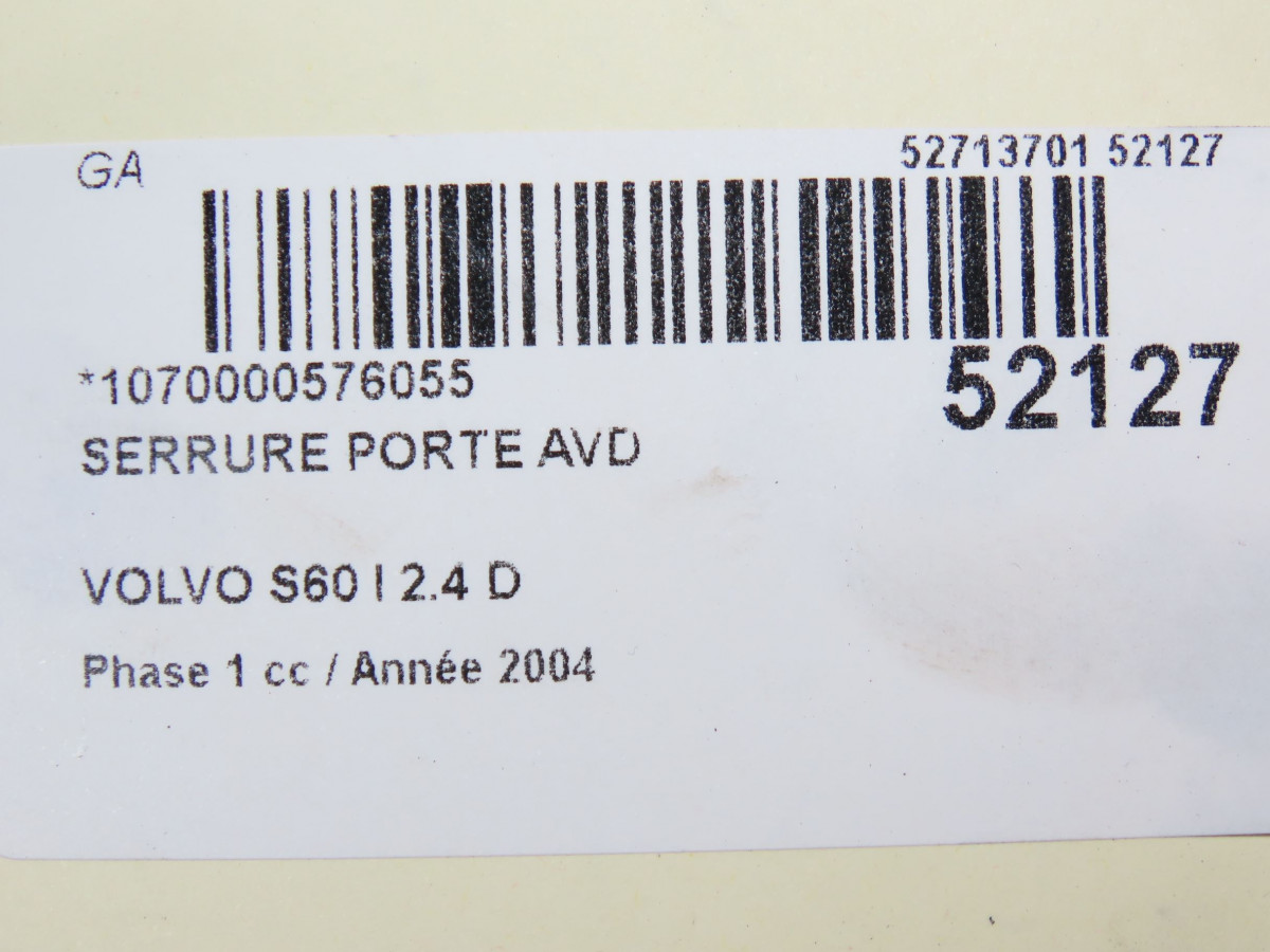 Serrure porte arg occasion VOLVO S60 I Phase 1 09-2000->06-2004 2.4 D 30663048
