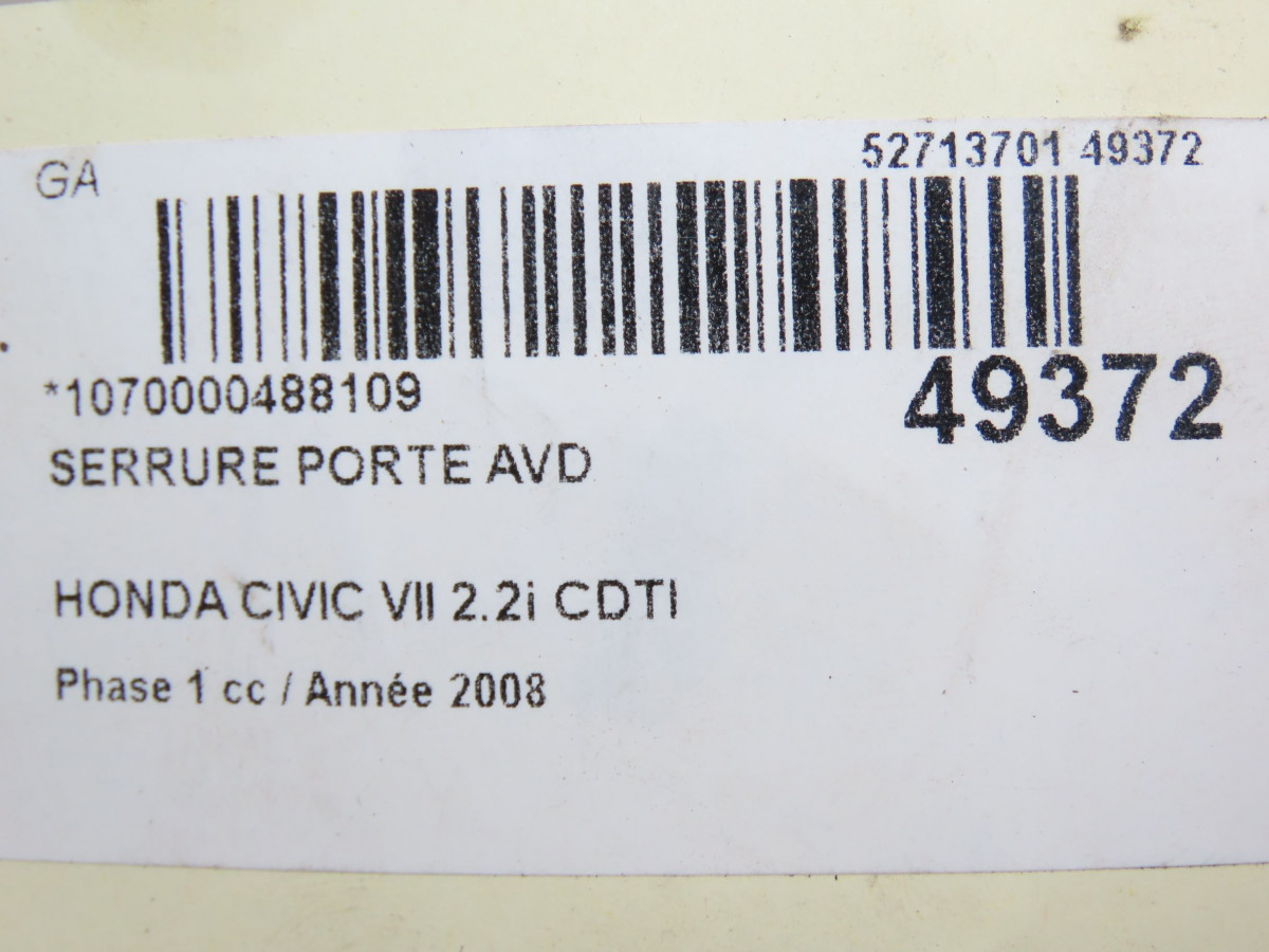 Serrure porte ard occasion HONDA CIVIC VII Phase 1 01-2006->09-2008 2.2i CDTI 72610SMGG12