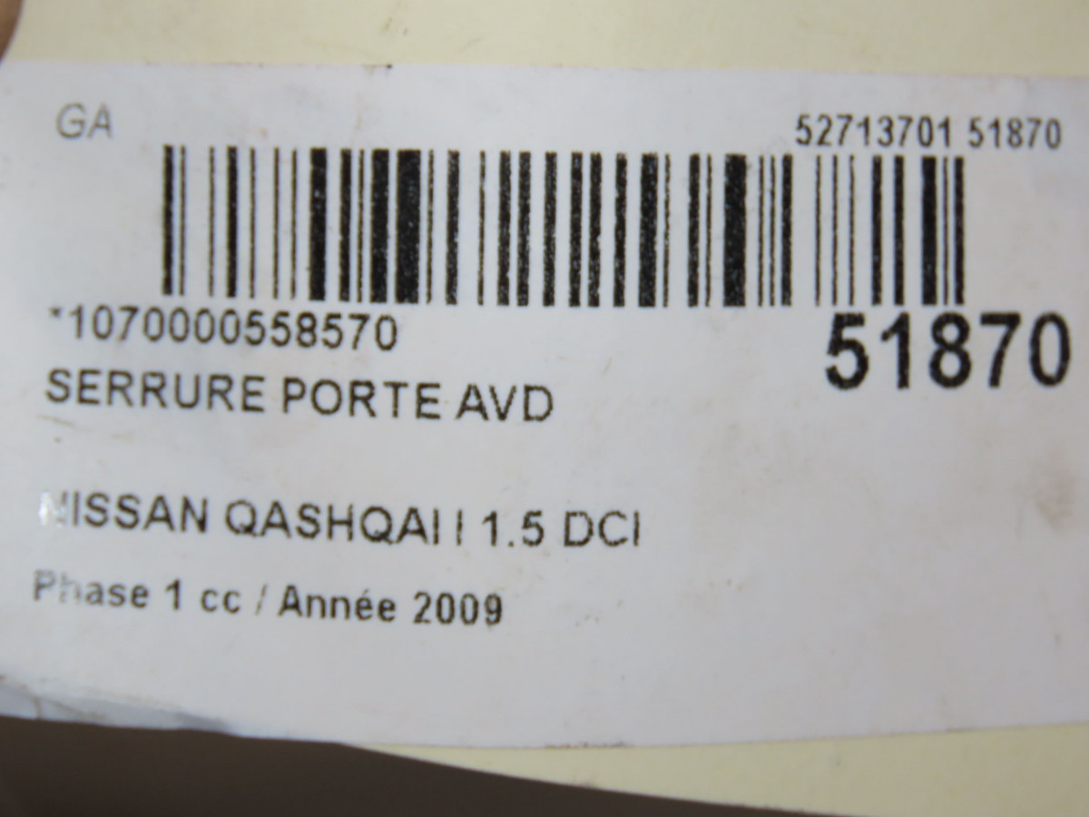Serrure porte ard occasion NISSAN QASHQAI I Phase 1 01-2007->09-2010 1.5 DCI 106ch 82500JD90C