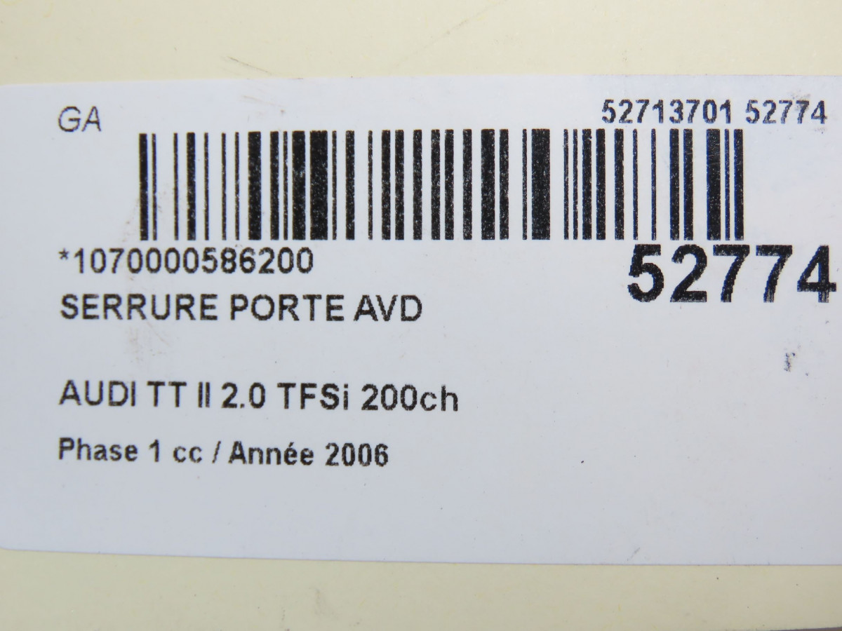 Serrure porte avg occasion AUDI TT II Phase 1 09-2006->04-2010 2.0 TFSi 200ch 8J1837015A