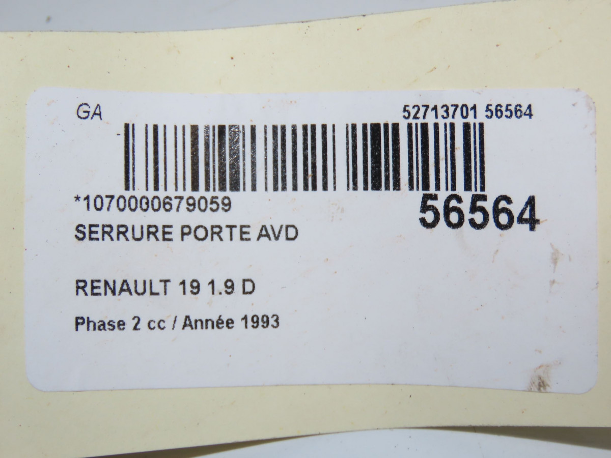 Serrure porte avg occasion RENAULT 19 Phase 2 04-1992->04-1997 1.9 D 7701030065