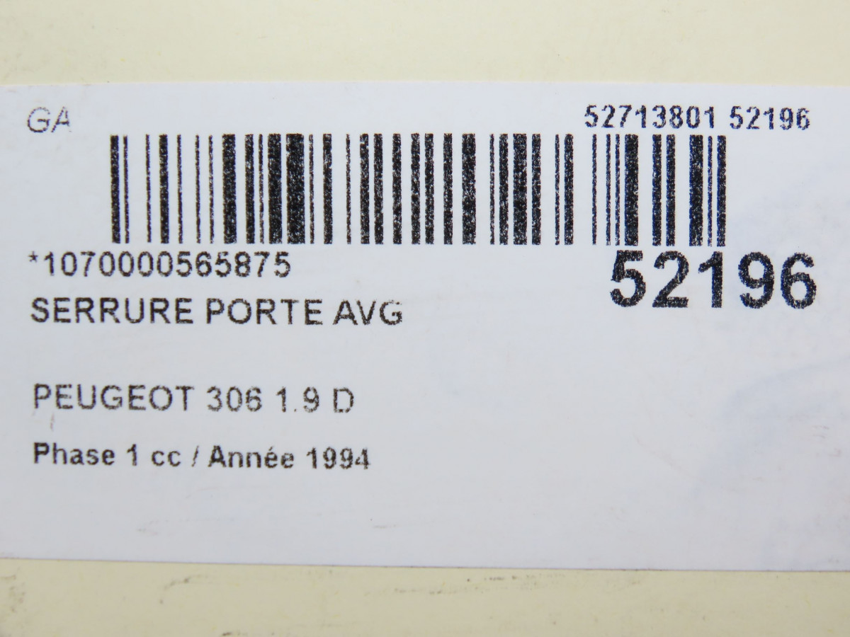 Serrure porte arg occasion PEUGEOT 306 Phase 1 09-1994->03-1997 1.9 D 913737