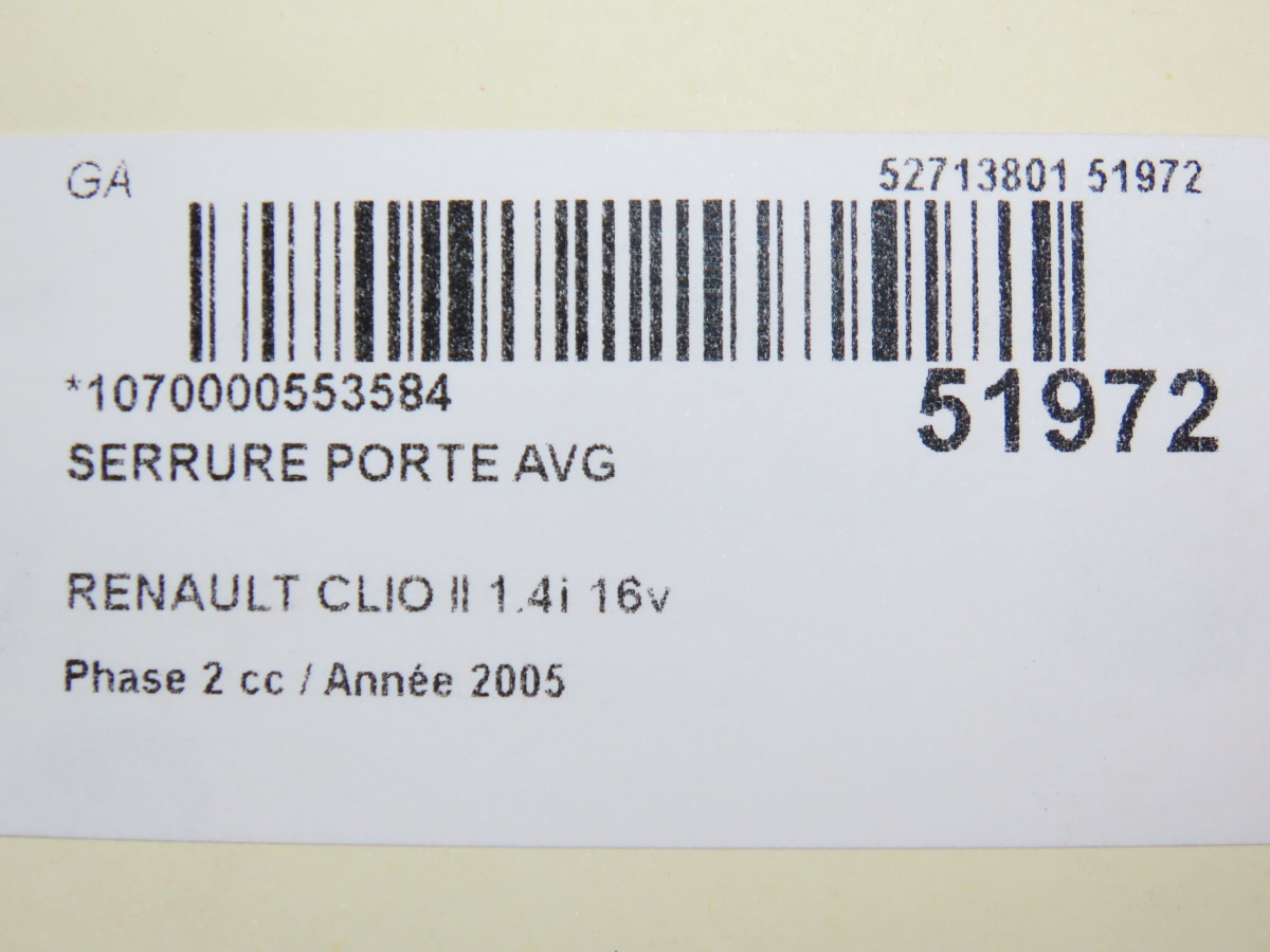 Serrure porte avg occasion RENAULT CLIO IIPhase 2 06-2001->07-2006 1.4i 16v