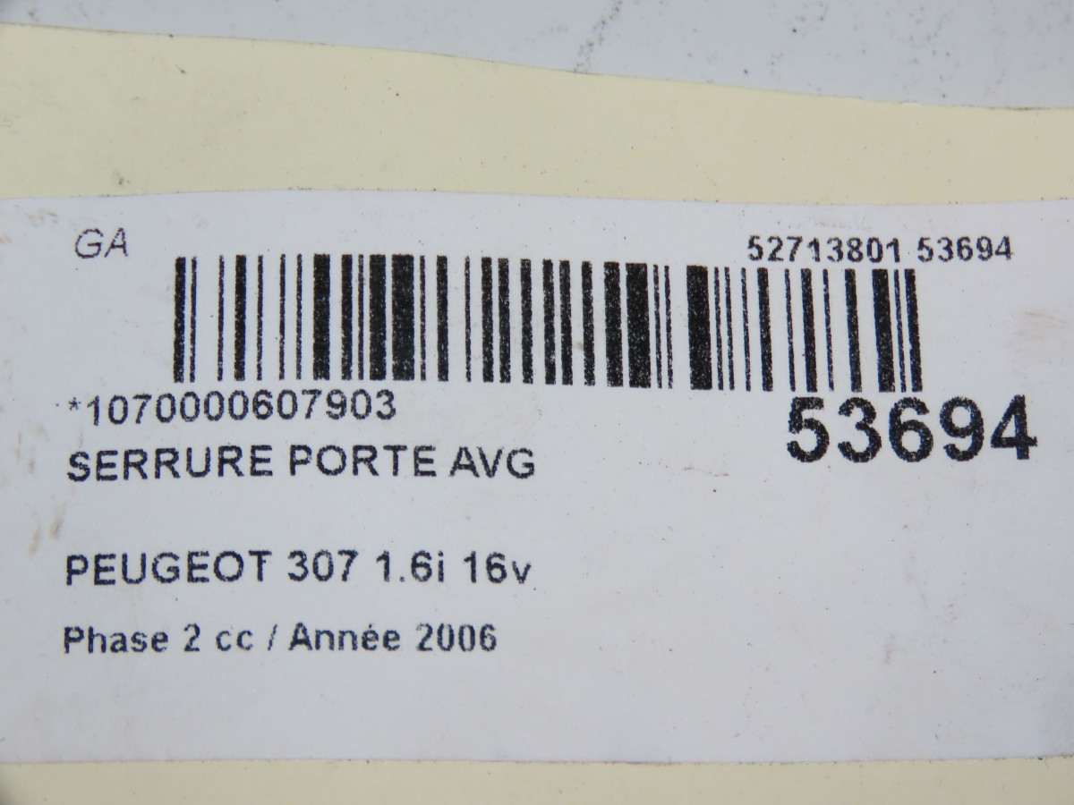 Serrure porte avd occasion PEUGEOT 307 Phase 2 06-2005->03-2008 1.6i 16v 9136Z9