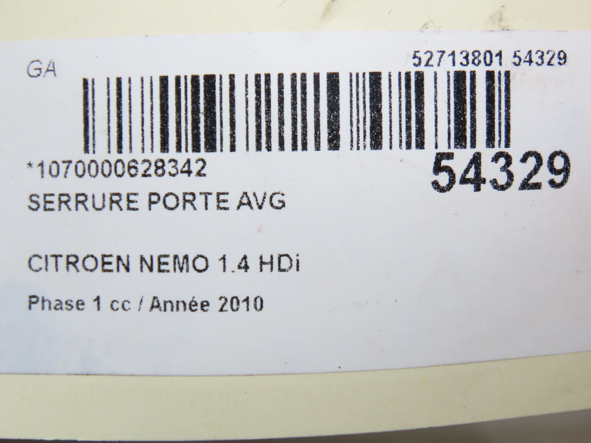 Serrure porte avd occasion CITROEN NEMO Phase 1 09-2008->... 1.4 HDi 1672007580