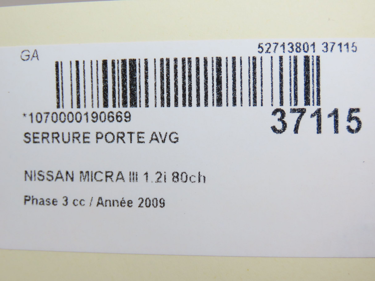 Serrure porte avd occasion NISSAN MICRA III Phase 3 11-2007->11-2010 1.2i 80ch 80500AX61A