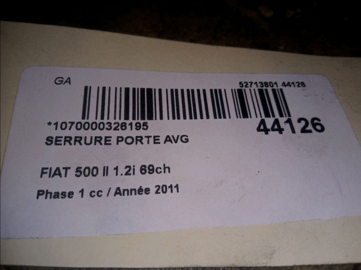 Serrure porte avd occasion FIAT 500 II 500 II Phase 1 2007-07-01->2016-03-31 1.2i 69ch 52191860