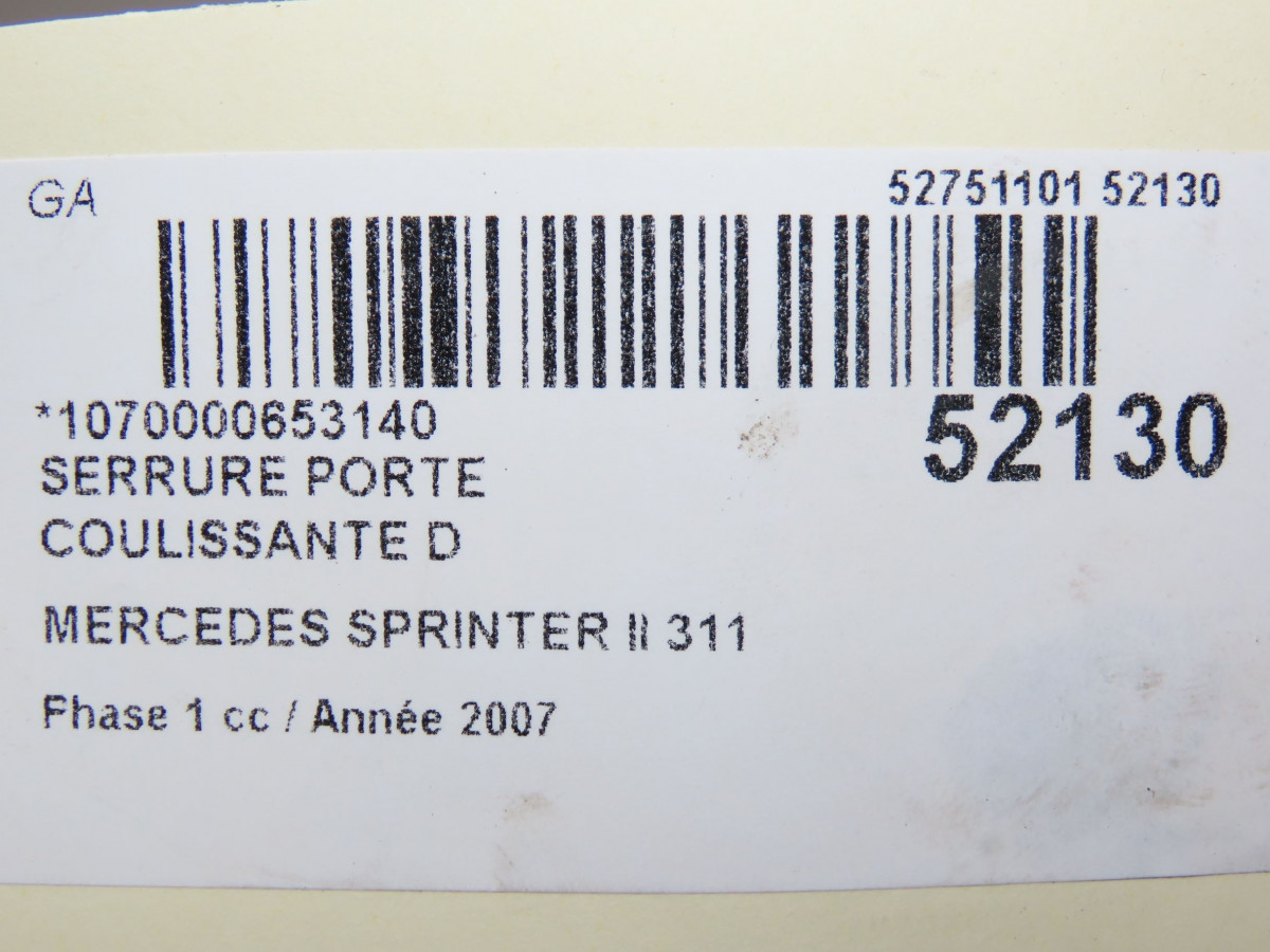 Serrure porte coulissante d occasion MERCEDES SPRINTER IIPhase 1 06-2006->... 311 CDI 109ch