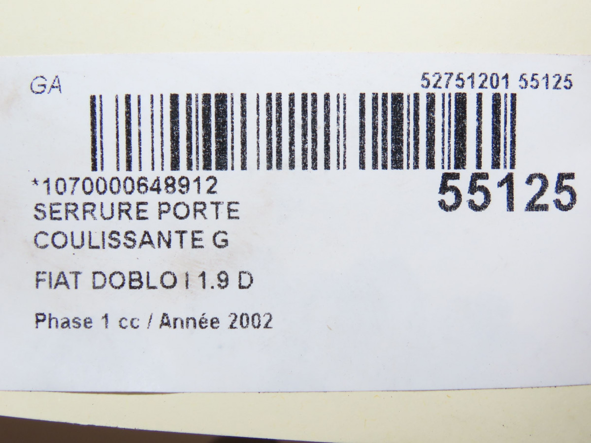 Serrure porte coulissante d occasion FIAT DOBLO I Phase 1 03-2001->12-2005 1.9 D 51765344