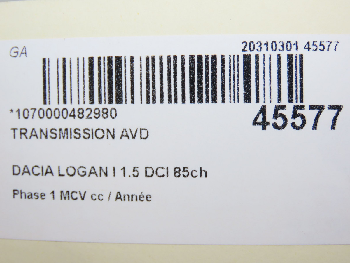 - TRANSMISSION AVD - AVEC ABS: NON - NOMBRE DE DENTS BAGUE ABS : 0 - LONGUEUR : 925 MM - DACIA LOGAN I Phase 1 MCV 01-2007->10-2008 1.5 DCI 85ch