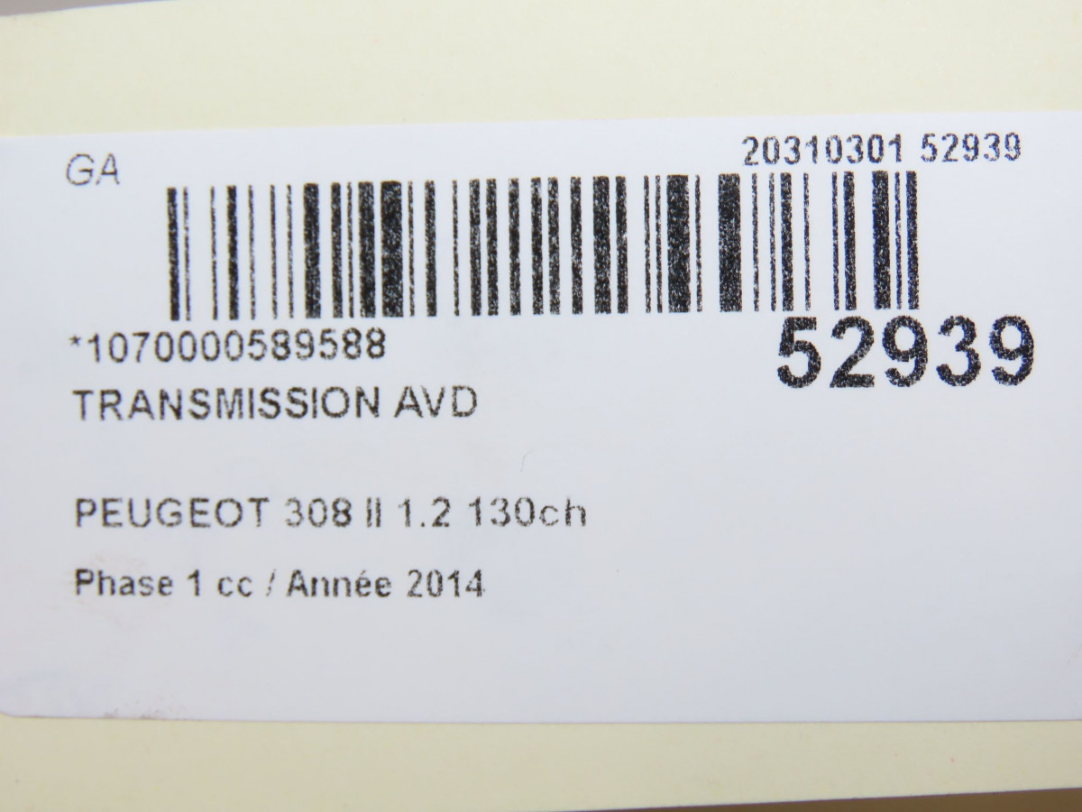 Transmission avant droite occasion PEUGEOT 308 II308 II Phase 1 2013-06-01->2017-08-31 1.2 130ch