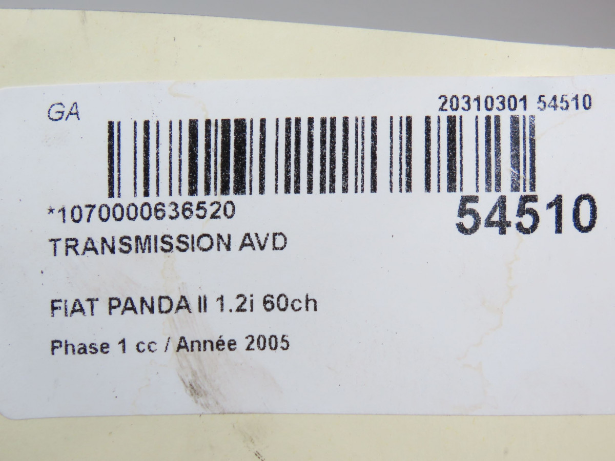 Kit serrures + antivol occasion FIAT PANDA II Phase 1 09-2003->12-2012 1.2i 60ch 71771348