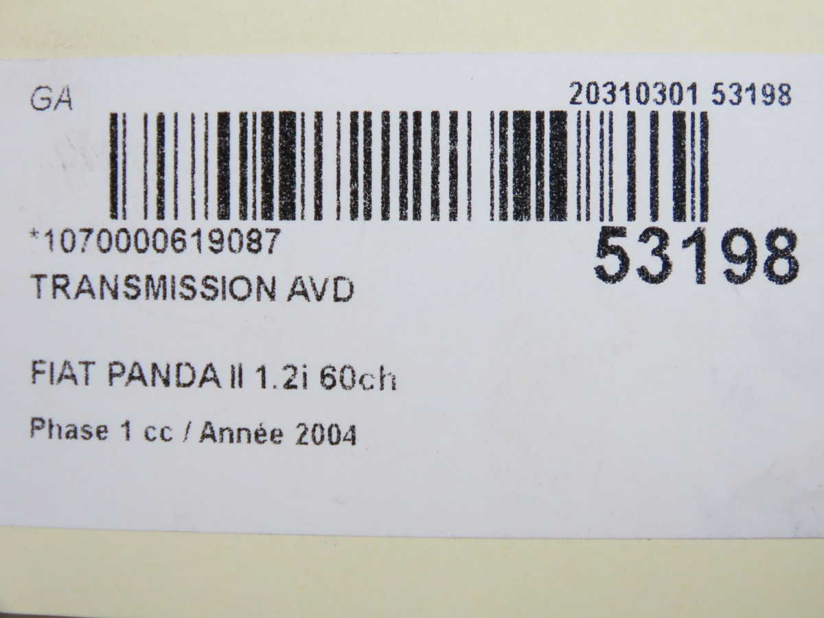 Alternateur occasion FIAT PANDA II Phase 1 09-2003->12-2012 1.2i 60ch 52003531