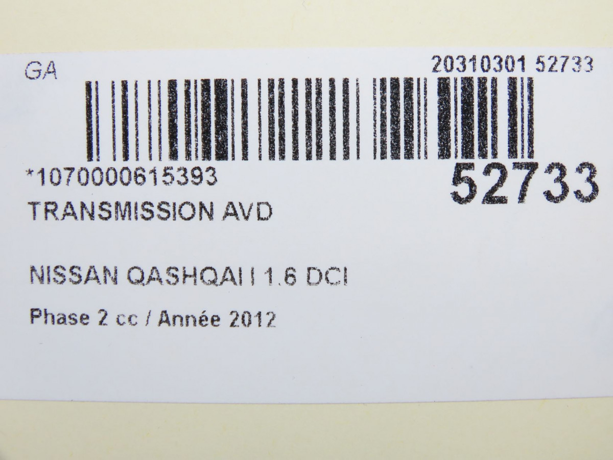 Transmission avant droite occasion NISSAN QASHQAI IPhase 2 03-2010->04-2014 1.6 DCI 130ch