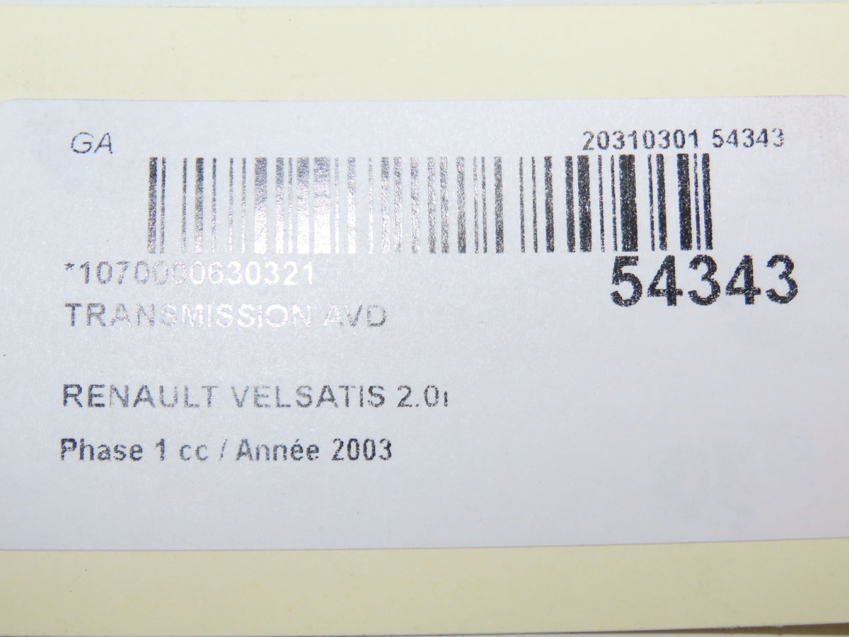 Transmission avant gauche occasion RENAULT VELSATIS Phase 1 01-2002->04-2005 2.0i 165ch 8200470138