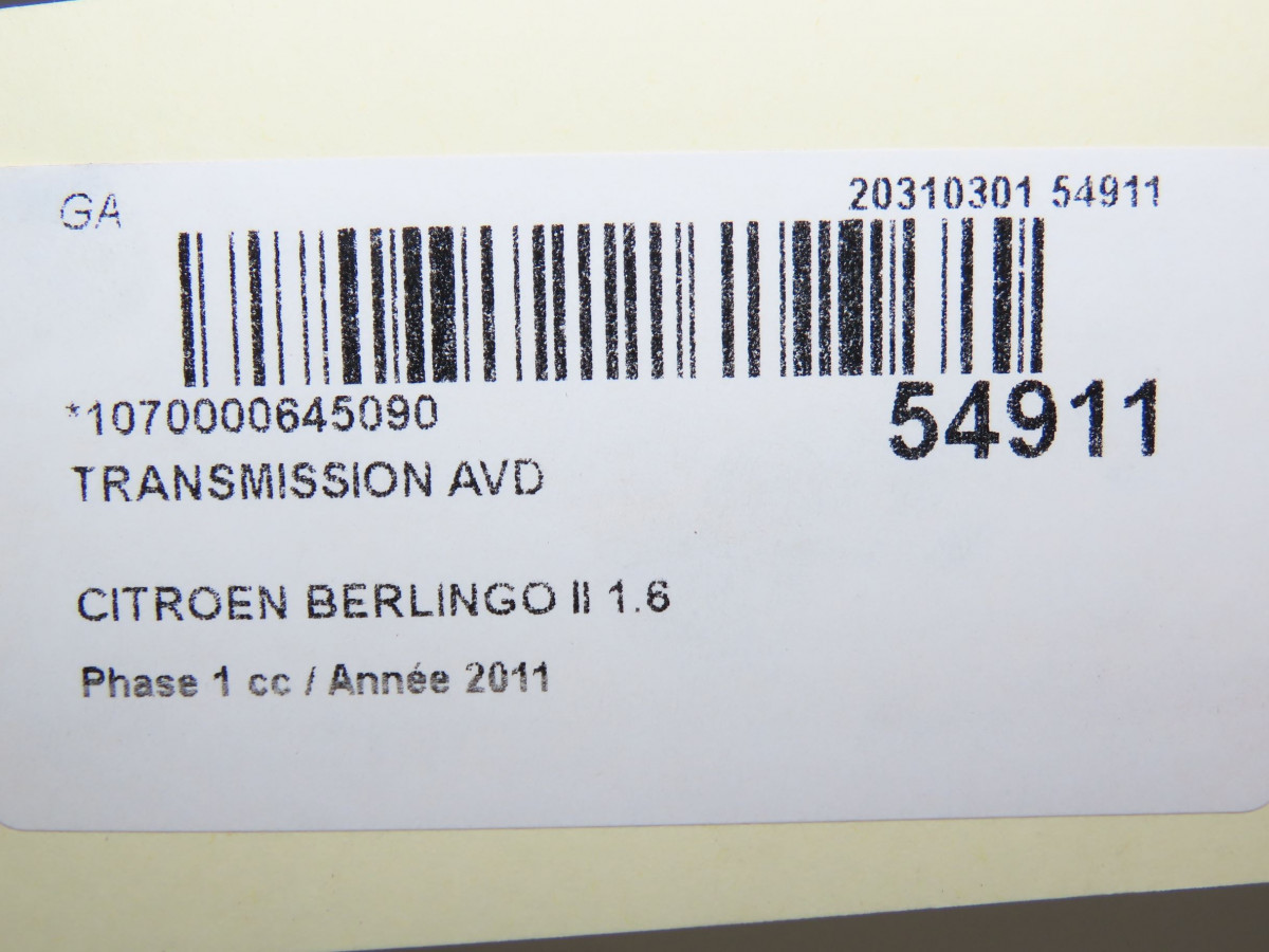Transmission avant droite occasion CITROEN BERLINGO IIPhase 1 05-2008->01-2012 1.6 HDI 16v 75ch