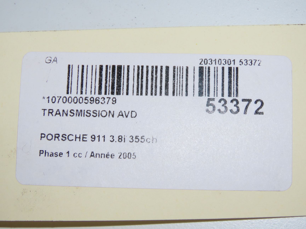 Transmission avant gauche occasion PORSCHE 911 Phase 1 07-2004->07-2008 3.8i 355ch