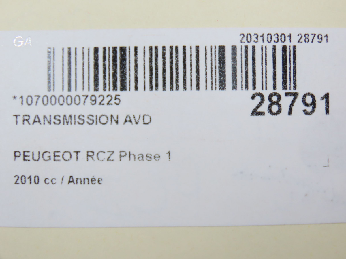 Transmission avant gauche occasion PEUGEOT RCZ Phase 1 01-2010->12-2012 3272WX