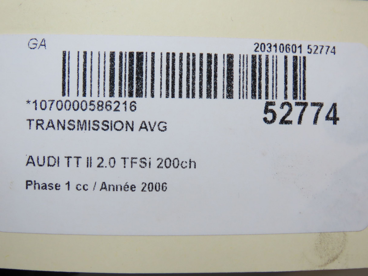 Transmission avant droite occasion AUDI TT II Phase 1 09-2006->04-2010 2.0 TFSi 200ch 3Q0407272AB