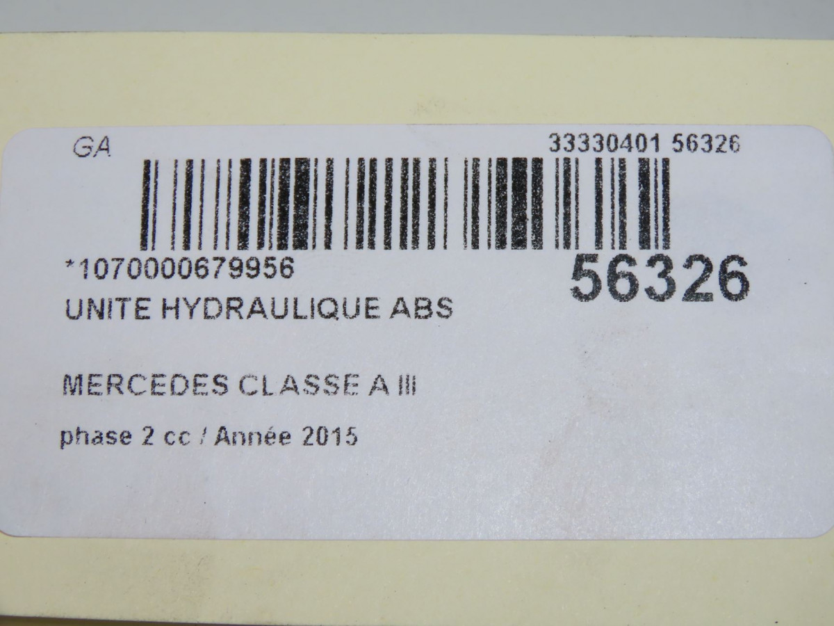 Unité hydraulique ABS occasion MERCEDES CLASSE A IIIphase 2 06-2015->... A160 1.5 D 90ch