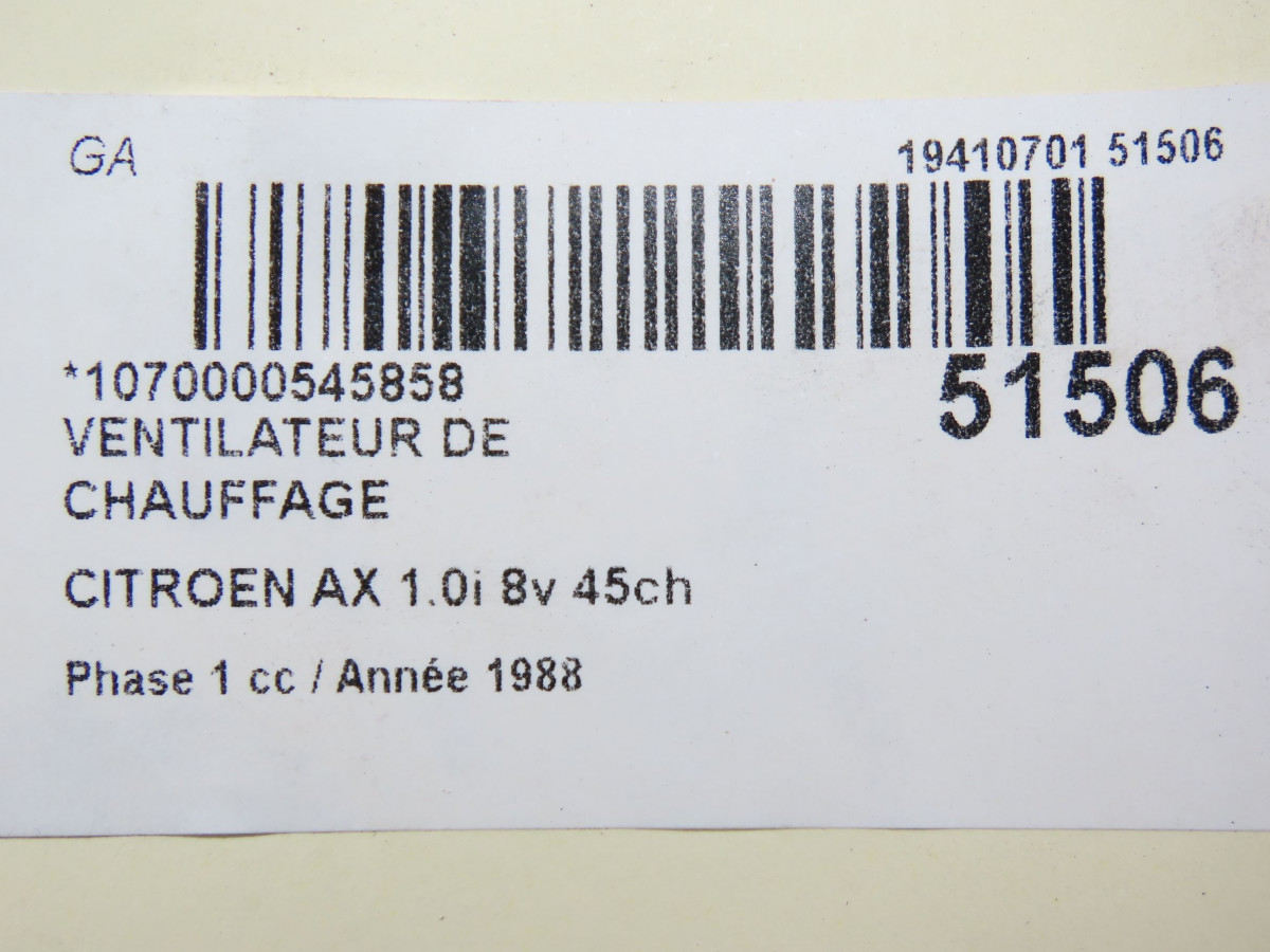 Ventilateur de refroidissement occasion CITROEN AX Phase 1 01-1987->06-1991 1.0i 8v 45ch 125350