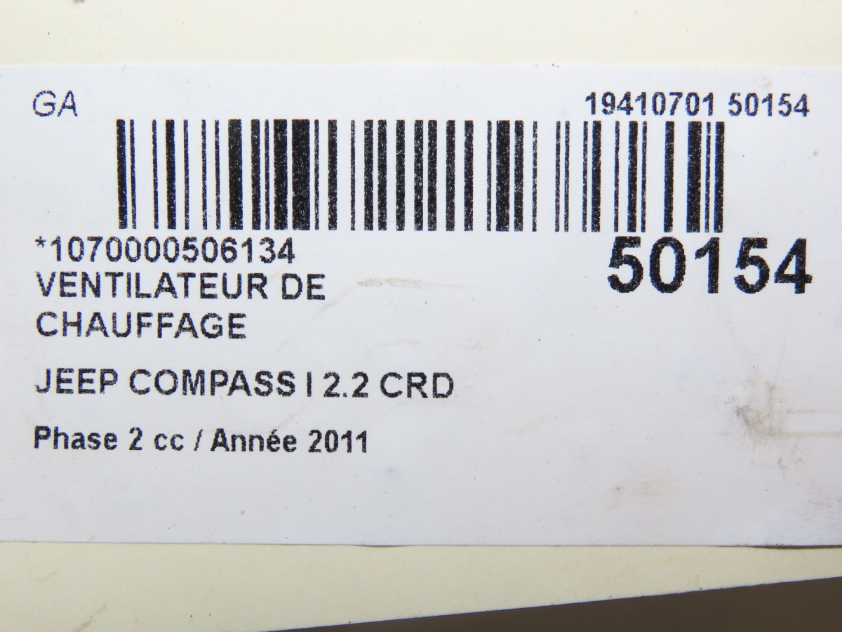 Ventilateur de chauffage occasion JEEP 146Phase 1 04-1995->04-1999 2.2 CRD 136ch