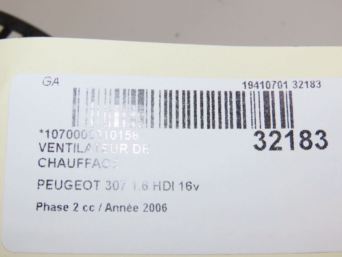 Ventilateur de chauffage occasion PEUGEOT 307Phase 2 06-2005->03-2008 1.6 HDI 16v 110ch