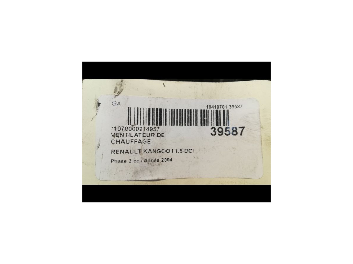 Ventilateur de chauffage occasion RENAULT KANGOO IPhase 2 03-2003->06-2010 1.5 DCI 80ch