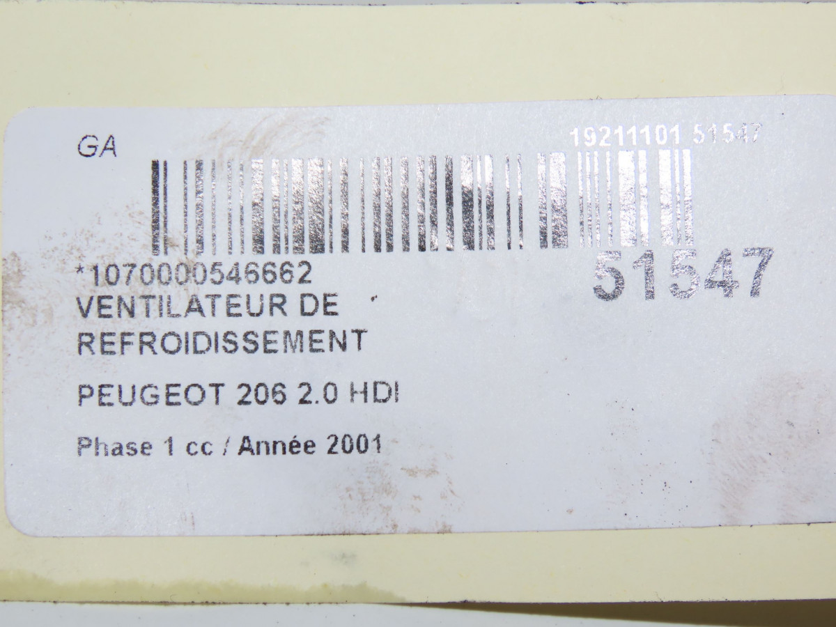 Ventilateur de refroidissement occasion PEUGEOT 206Phase 1 09-1998->03-2009 2.0 HDI