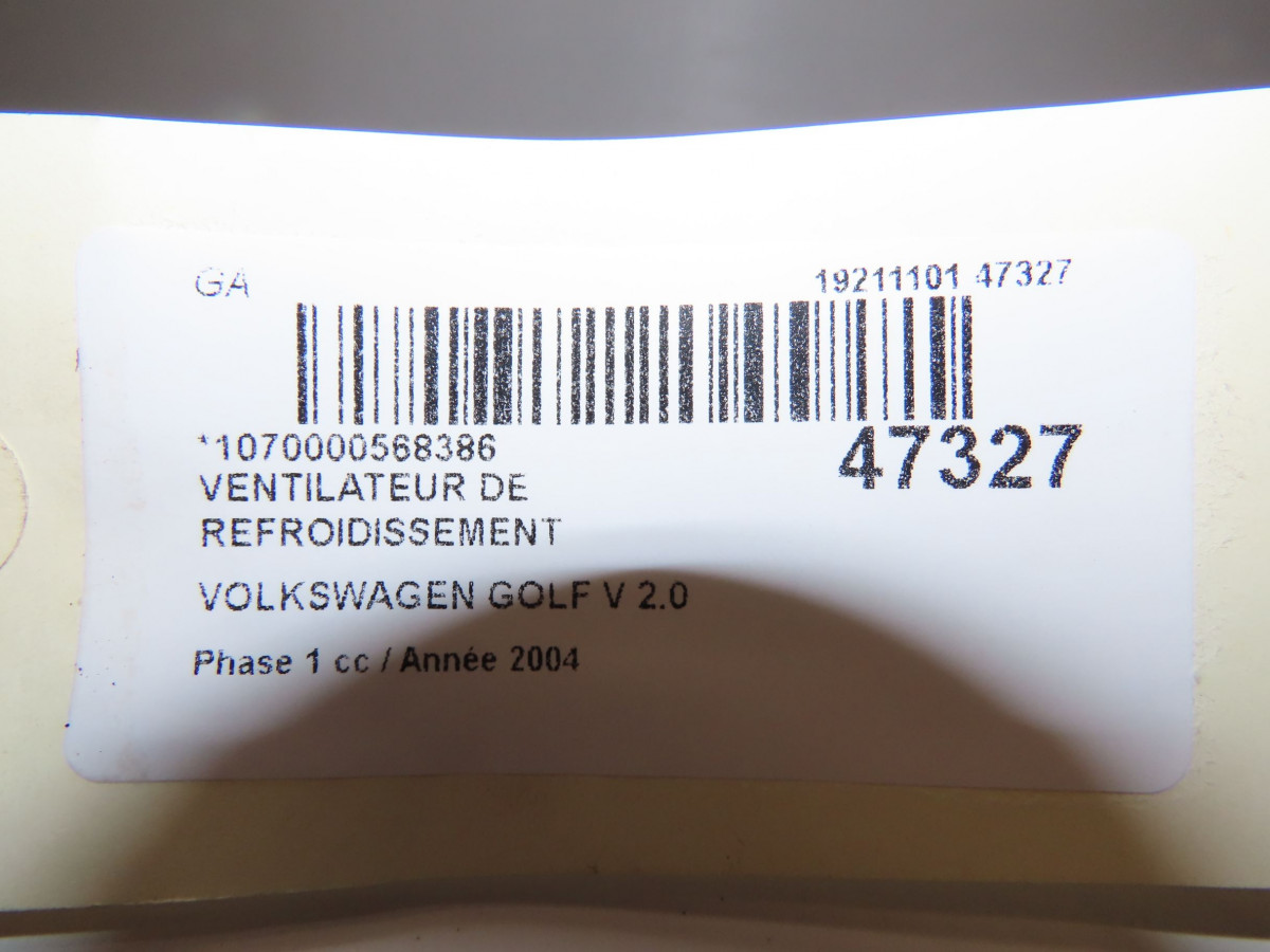 Ventilateur de refroidissement occasion VOLKSWAGEN GOLF VPhase 1 11-2003->10-2008 2.0 SDI 75ch