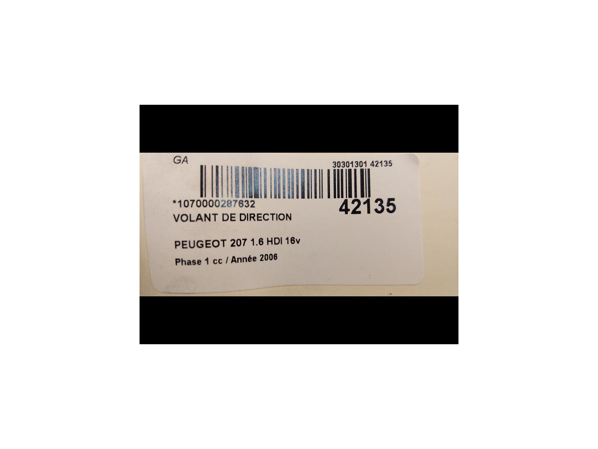 Volant de direction occasion PEUGEOT 207Phase 1 04-2006->06-2013 1.6 HDI 16v 90ch